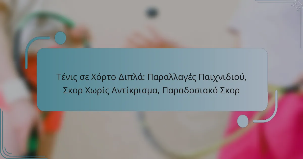 Το διπλό τένις προσφέρει μια ποικιλία μορφών παιχνιδιού που ενισχύουν τόσο τον ανταγωνισμό όσο και την απόλαυση, συμπεριλαμβανομένων των κανονικών διπλών, των μικτών διπλών και του Fast4 τένις. Μεταξύ των συστημάτων βαθμολόγησης, η βαθμολόγηση χωρίς πλεονέκτημα απλοποιεί το παιχνίδι, εξαλείφοντας τους πόντους πλεονεκτήματος, επιτρέποντας ταχύτερους αγώνες. Αντίθετα, η παραδοσιακή βαθμολόγηση ακολουθεί μια δομημένη ακολουθία που επηρεάζει τις στρατηγικές των παικτών και τη δυναμική των αγώνων.