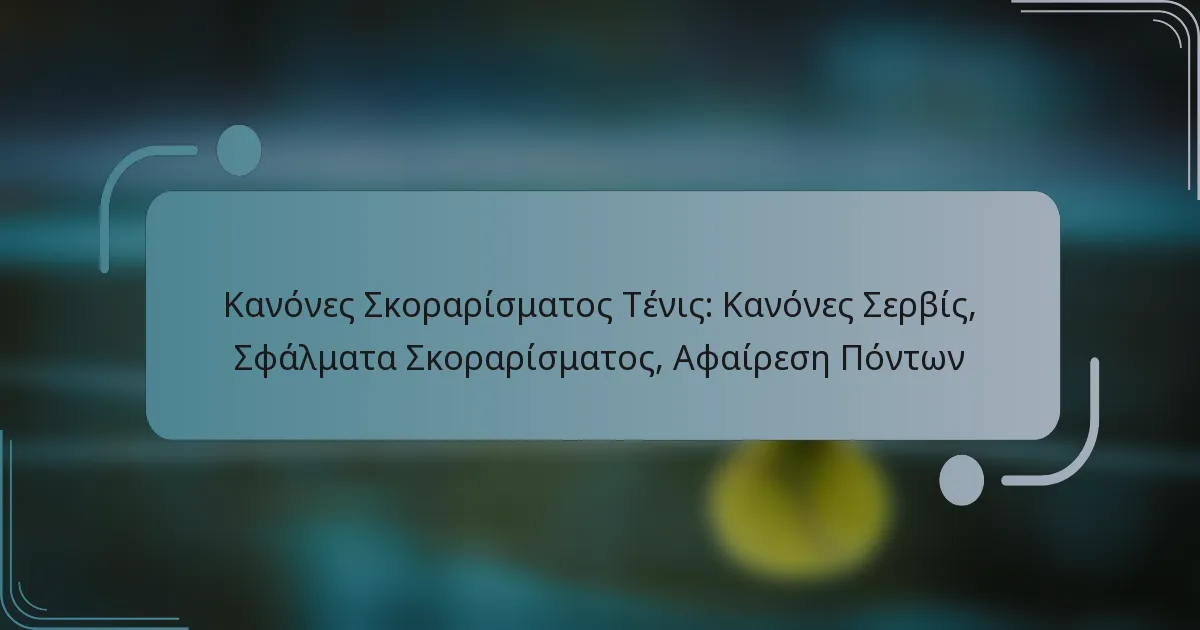 Οι κανόνες υπηρεσίας στο τένις καθορίζουν πώς οι παίκτες ξεκινούν κάθε πόντο, εστιάζοντας στη σωστή τεχνική, τη διαχείριση λαθών και τη σειρά υπηρεσίας. Η κατανόηση αυτών των κανόνων είναι απαραίτητη για τη διατήρηση του δίκαιου παιχνιδιού και την εξασφάλιση ενός ομαλού αγώνα.