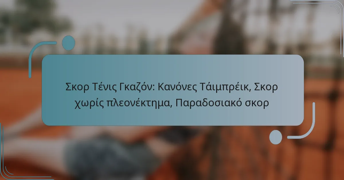 Η βαθμολογία στο τένις περιλαμβάνει διάφορες μεθόδους για να καθορίσει το αποτέλεσμα των αγώνων και των σετ, κάθε μία με τους δικούς της κανόνες. Οι ταιμπρέικερ χρησιμοποιούνται όταν το σκορ φτάνει 6-6 σε ένα σετ, ενώ η βαθμολογία no-ad απλοποιεί το παιχνίδι εξαλείφοντας τον κανόνα του πλεονεκτήματος μετά το ντεuce. Η παραδοσιακή βαθμολογία χρησιμοποιεί ένα μοναδικό σύστημα πόντων που περιλαμβάνει όρους όπως “αγάπη”, “ντεuce” και “πλεονέκτημα”, οι οποίοι μπορεί να είναι δύσκολοι για τους αρχάριους να κατανοήσουν.
