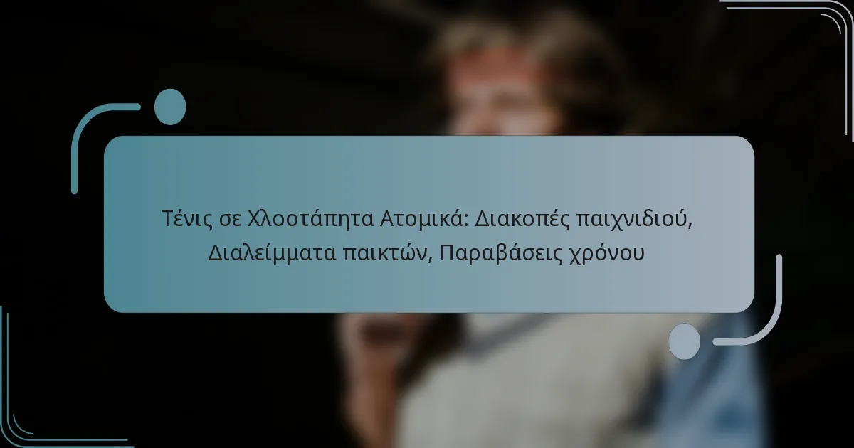 Στο τένις σε χόρτο, οι διακοπές παιχνιδιού μπορούν να επηρεάσουν σημαντικά τον ρυθμό του αγώνα, προερχόμενες από διαλείμματα παικτών, αλλαγές καιρού ή εξωτερικούς παράγοντες. Τα διαλείμματα των παικτών ρυθμίζονται ώστε να μην διαταράσσουν τη ροή του παιχνιδιού, ενώ οι παραβάσεις χρόνου συμβαίνουν όταν οι παίκτες υπερβαίνουν τον καθορισμένο χρόνο μεταξύ πόντων ή παιχνιδιών, ενδεχομένως οδηγώντας σε ποινές. Η κατανόηση αυτών των στοιχείων είναι κρίσιμη για τους παίκτες και τους θεατές ώστε να εκτιμήσουν τη δυναμική του παιχνιδιού.