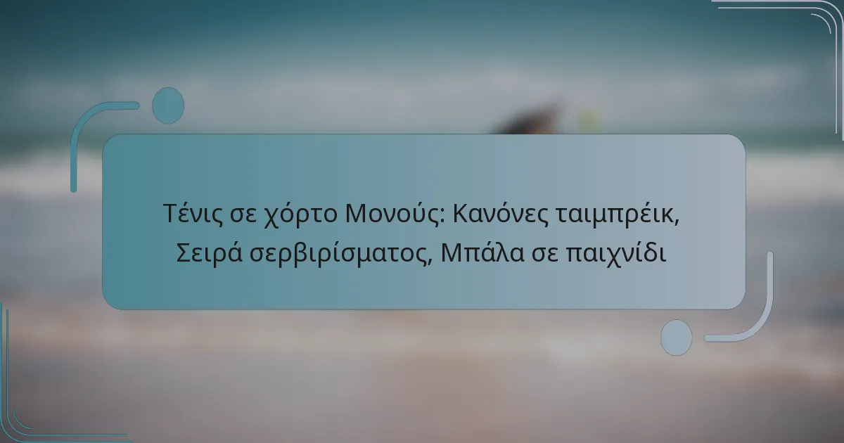 Το μονό του τένις σε χόρτο διαθέτει συγκεκριμένους κανόνες για τους ταιμπρέικ, τη σειρά σερβιρίσματος και την μπάλα εντός παιχνιδιού που είναι ουσιώδεις για δίκαιο παιχνίδι. Οι ταιμπρέικ χρησιμοποιούνται όταν το σκορ φτάνει 6-6 σε ένα σετ, παρέχοντας μια σαφή μέθοδο για τον προσδιορισμό του νικητή. Η σειρά σερβιρίσματος καθορίζεται μέσω αρχικής επιλογής και εναλλασσόμενων κανόνων, ενώ η μπάλα παραμένει εντός παιχνιδιού από τη στιγμή που χτυπά ο σερβιτόρος μέχρι να αναπηδήσει δύο φορές ή να κριθεί εκτός. Η κατανόηση αυτών των κανόνων είναι ζωτικής σημασίας για τους παίκτες ώστε να βελτιώσουν την απόδοσή τους και τη στρατηγική τους στο γήπεδο.