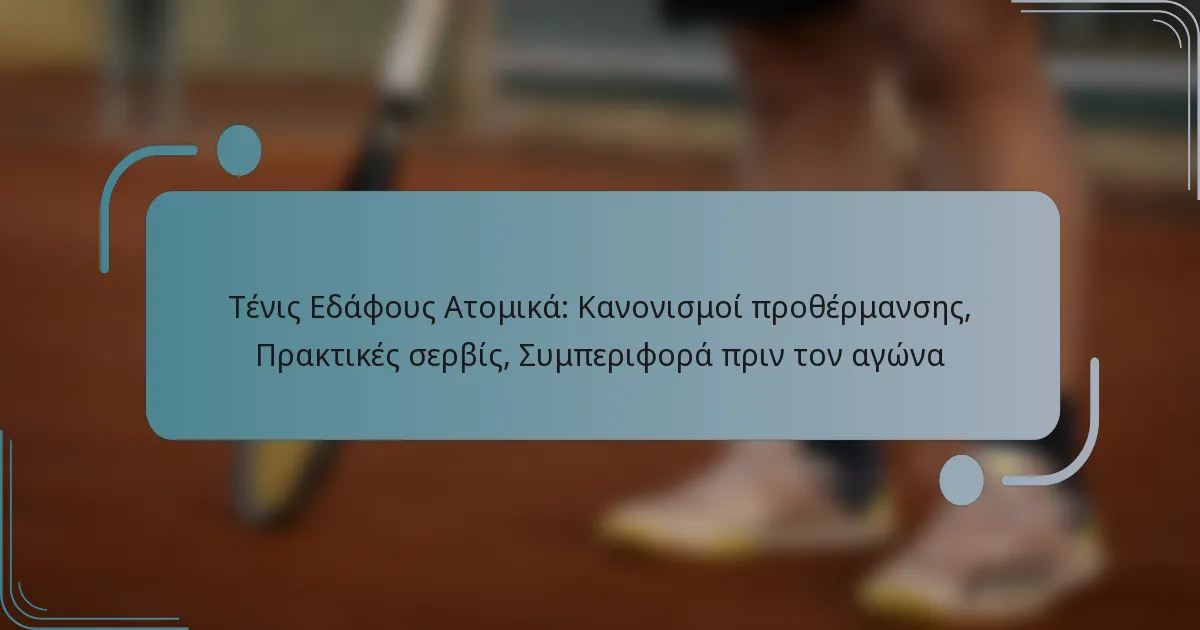 Στο τένις σε μονούς αγώνες, οι κανονισμοί προθέρμανσης παίζουν ζωτικό ρόλο στην προετοιμασία των παικτών για τον ανταγωνισμό, διασφαλίζοντας ταυτόχρονα τη δικαιοσύνη. Αυτές οι οδηγίες καλύπτουν τη διάρκεια και τη δομή των προθερμάνσεων, καθώς και τη σημασία της εξάσκησης των σερβίς για την ενίσχυση της αυτοπεποίθησης και της ακρίβειας. Επιπλέον, η συμπεριφορά πριν από τον αγώνα τονίζει τη σημασία της ευπρέπειας και του αθλητικού πνεύματος, συμβάλλοντας σε μια σεβαστή ατμόσφαιρα που ενισχύει τη συνολική απόδοση.